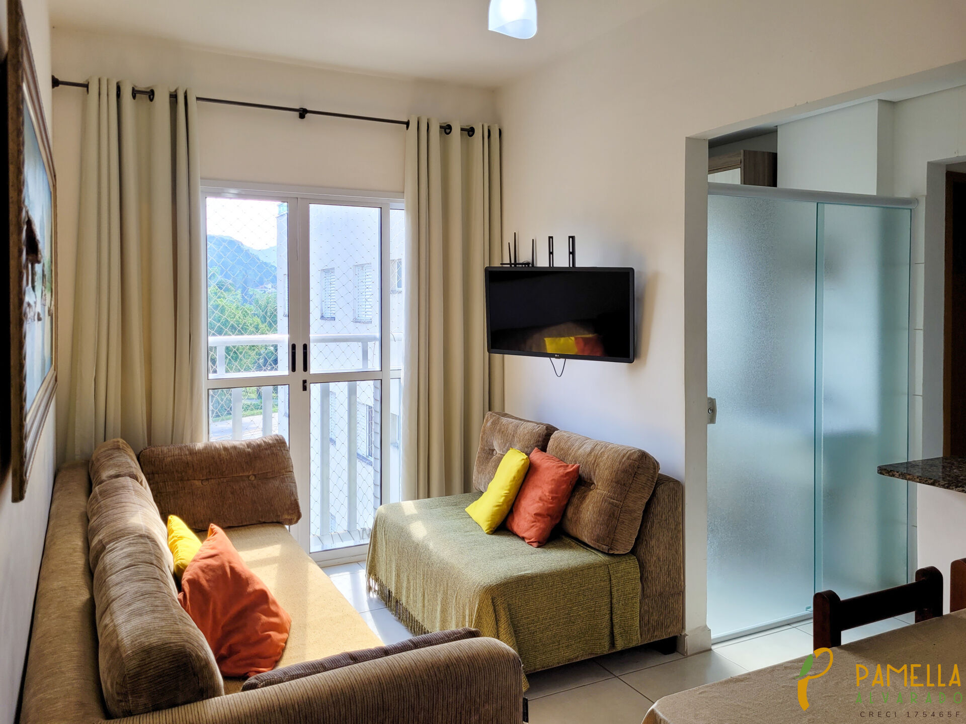 O apartamento tem 58 m² de área útil, distribuídos em dois quartos, sala, cozinha americana , área de serviço e banheiro social. Ele é todo mobiliado e decorado com bom gosto e qualidade. Ele também tem uma vaga de garagem .