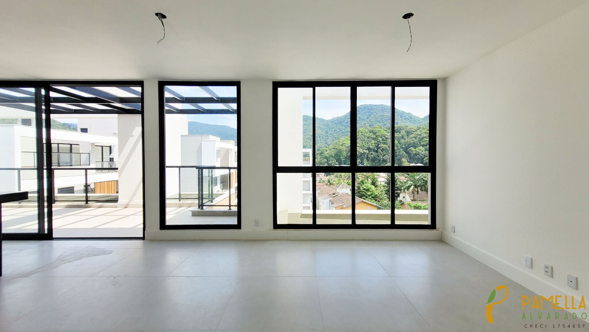 A cobertura possui 196 metros quadrados de área útil, distribuídos em 3 suítes, 5 banheiros, sala de estar, sala de jantar, cozinha, área de serviço e varanda gourmet com churrasqueira. Além disso, conta com 3 vagas de garagem cobertas e exclusivas.