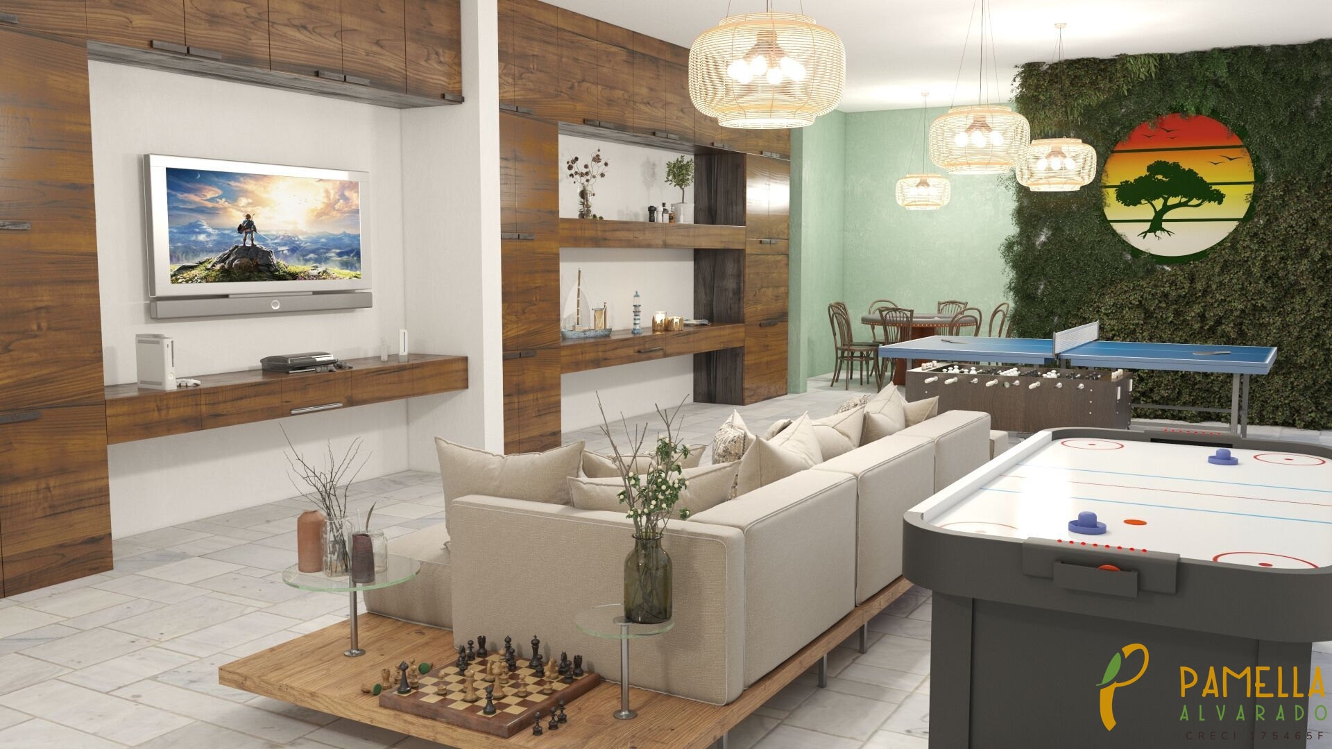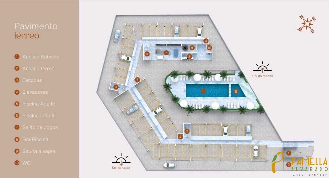 - Área de lazer com piscina, sala de jogos e espaço gourmet