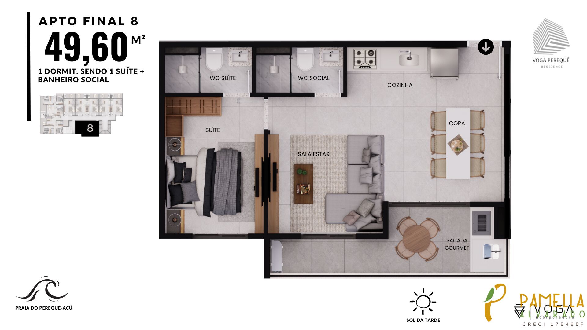 - Apartamento de 49m² – 1 suíte + lavabo, ideal para quem deseja mais espaço.