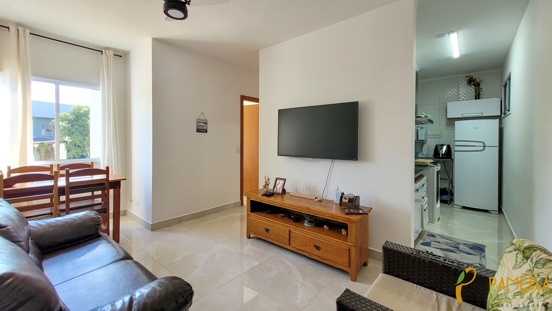 Com uma ampla sala de estar e TV, é perfeito para momentos de relaxamento. A cozinha planejada traz funcionalidade e estilo, equipada com armários sob medida. Além disso, conta com área de serviço e banheiro social, garantindo comodidade no dia a dia.